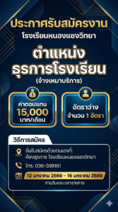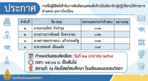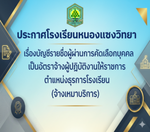 ประกาศโรงเรียนหนองแซงวิทยา เรื่องบัญชีรายชื่อผู้ผ่านการคัดเลือกบุคคลเป็นอัตราจ้างผู้ปฏิบัติงานให้ราชการ ตำแหน่งธุรการโรงเรียน (จ้างเหมาบริการ)